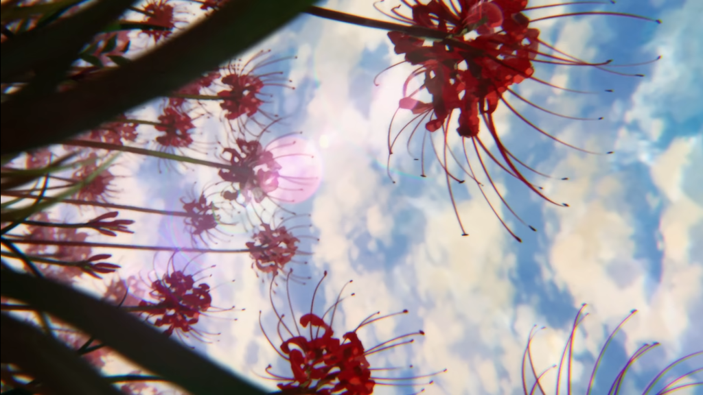 歌詞意譯「紅蓮之花,盛開吧!照亮(我的)命運!」這裡的意思,好像讓紅蓮之花成了希望之光似的。可是,這殘酷的隱喻,就是用無數的人生死相隔,換來逆轉命運之光。在《鬼滅之刃》裡,紅蓮被稱為「彼岸花」,有著「永遠無法相遇,只能在彼岸遙望」的意思。故事裡的鬼王無慘所追尋的「藍色彼岸花」,更是世上聞所未聞的物種,根本沒有人能証實它是否真的存在。也許,這也意味著,成為鬼之後,餘下的生命只能追尋著根本沒有存在的「藍色彼岸花」。