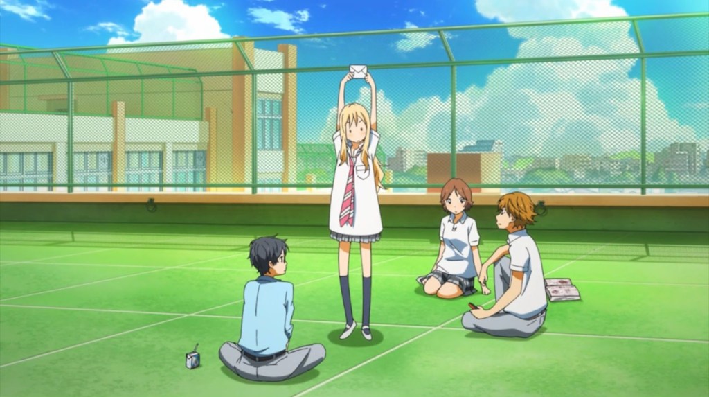 《四月》,乍看就是單純一部校園戀愛番的動畫。可是細心咀嚼,就能細味作品中的酸甜苦辣、醇香回甘。四位主角都是十四歲的中學生,以青春作為本錢,肆意揮霍——轟轟烈烈地愛,切切實實地活。